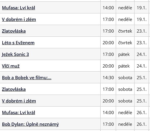 neděle 19. 1. 2025 od 10 a od 14 hodin
